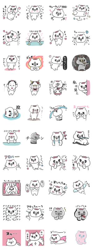 可愛いけど時折シュールでダークな表情になるクマ子が最高です。絶妙に色々な場面で使えてLINEの会話が盛り上がるので友人たちにも人気です。
