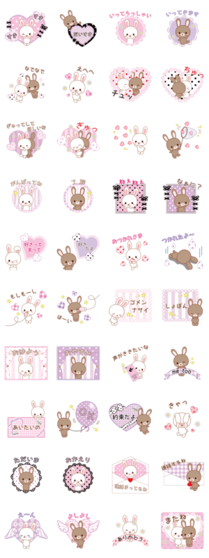 彼氏や彼女、夫婦、友達も!大好きな人と一緒に使える、仲良しウサギ、ライ&メイの甘くてかわいい会話スタンプです。