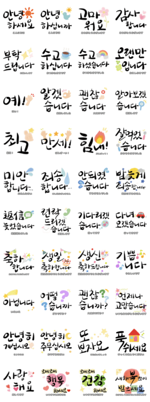 【韓国語和訳付】かわいいハングル敬語 スタンプ画像一覧