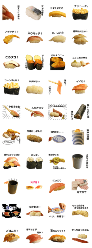 みんな大好きなお寿司を実写スタンプにしました。飯テロにもどうぞ。