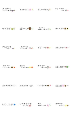 シンプルで少しかわいいスタンプです。敬語の横書き文字に絵文字を添えました。よく使う言葉を集めたので一つ持ってると便利です♪