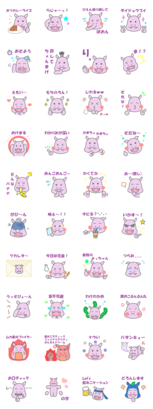 動物園でお馴染みの動物、カバのスタンプ第二弾!!今回のかばちゃんは、今流行りの言葉から昔流行った言葉まで盛り沢山。死語をばんばん使って寒い風を吹かせましょう!