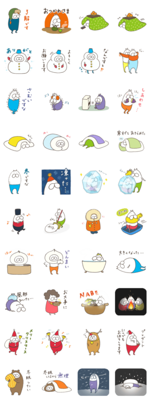 ねこタイツの冬をテーマにしたスタンプです。布団にもぐってみたり、時には雪に埋もれたりしながらねこタイツたちと一緒に冬を楽しみましょう。クリスマススタンプ付き。くらきち より発売