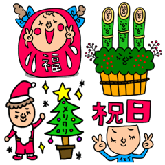 年末年始に使えるスタンプです。とっても数が多く使いどころがたくさんあるのが良いですね。
