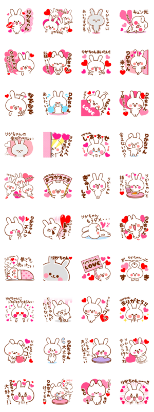 大好きな♡りかちゃん♡に送るラブラブスタンプです[りか/リカ/リカちゃん/りかこ/rica/梨香/里香/莉花/梨華/彼氏/彼女/恋人/友達/家族]ゆるいうさぎのキャラクターです♪