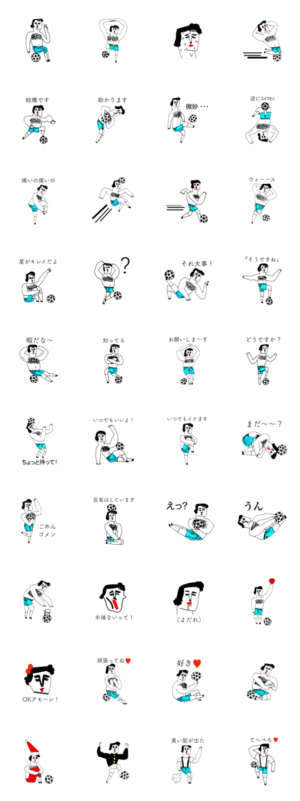 サッカーやフットサルなどが好きな人にオススメのスタンプです。ボブさんは日本代表を応援しています。油山 より発売