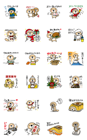かわいいラッコさんの年末年始スタンプ。いろいろあって、何かと使えます。