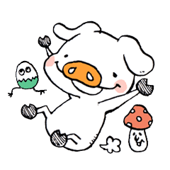 こ憎(肉)たらしいぶたさん「ポトフスキー」のスタンプ第4弾!今回はたくさんの小さくにぎやかな仲間たちも盛りだくさん!ますますシニカルでハッピーなスタンプです。