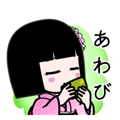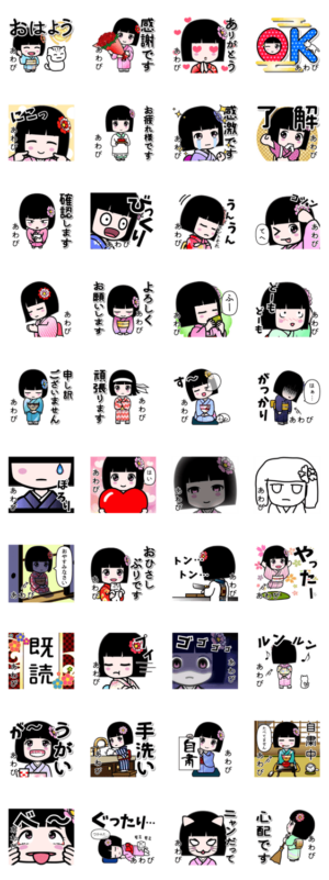 『あわび』用のよく使う言葉を詰め合わせた座敷童子のスタンプです。和服 着物 浴衣かがりひな より発売