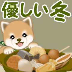ころころ赤ちゃん柴犬。鍋・おでん・シチュー・焼芋・お餅・抹茶ケーキ等の冬の味覚を優しい言葉に添えて。クリスマス・お正月・バレンタインデーにも。文字大きめです。つのっち より発売