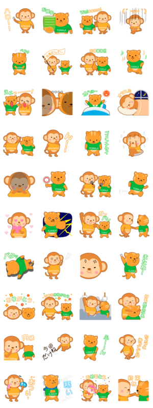 仲良しのトラとサルをモチーフにしたトラジとモンチャンのスタンプを制作しました。少しでも親しみを持って、使ってもらえたらうれしいです。TAKAAKI_NAGOYA より発売