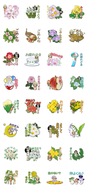 花束と、物語と、やさしい言葉であいさつするスタンプです。tsubasa.seisakusyo より発売