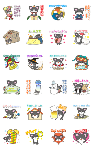 幸運が巡ってくる可愛いチワワのスタンプ第2弾です。お正月、クリスマス、お誕生日、記念日に使って、すべての人たちと幸運、笑顔、感謝でつながりましょう!