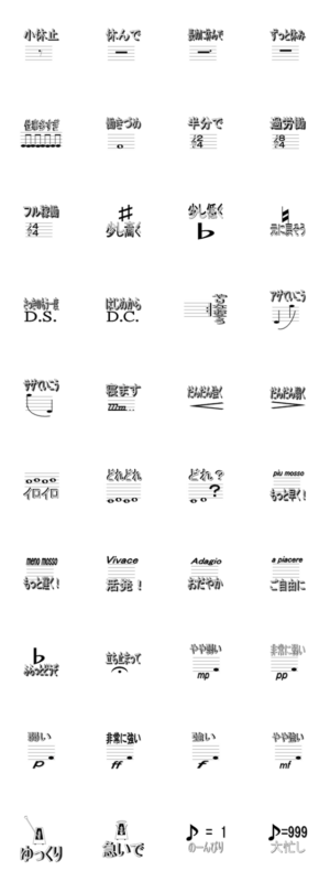 仕事の説明を、音楽記号が音楽に関係ある図形で説明するスタンプです。ホップステップ JAPAN より発売