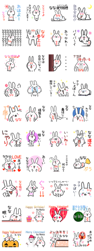 ななさん用の、可愛いウサギのゆるい名前/あだ名スタンプ。ナナ/nana/奈々/菜々/七奈/菜菜/菜那/夏奈/夏菜/ななみ/ななこ/ななえ/ななか/等の名前の方専用で送ると面白い♪むらびと【名前・アダ名のスタンプ&着せかえ制作】 より発売