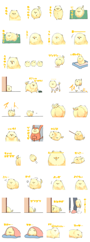 黄色い毛玉のポメラニアンのスタンプその2です高良 より発売