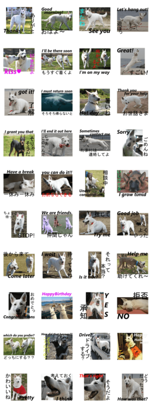 ホワイトシェパード 英語ver.(実写版)1 スタンプ画像一覧
