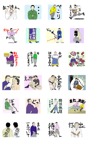 お相撲に必要不可欠な存在、呼出しさんのスタンプ。呼出しさんがあなたの気持ちを代弁!N@riko より発売