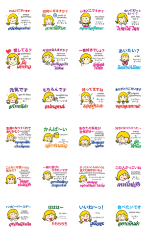カノムちゃんのタイ語日本語 基本1PLAY スタンプ画像一覧