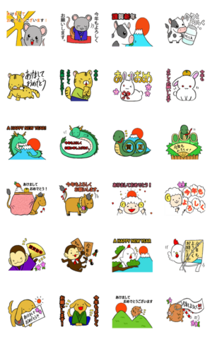 毎年の新年の挨拶が行えるスタンプですね。どの干支も可愛いので使いやすいですね。