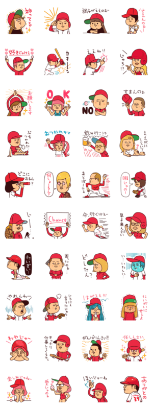 広島弁スタンプ野球編。野球を応援する女子や男子が登場。野球好きな友達や家族とのやりとりに。KAGE310 より発売