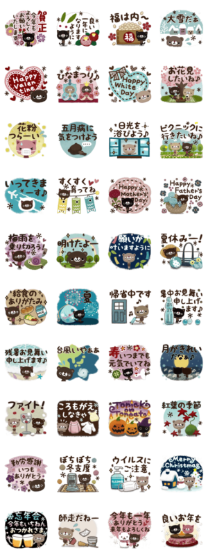 お正月から大晦日まで一年間の主要な行事・天候・体調の絵を順番に並べたセットです♪特別な日のやりとりに。バレンタイン・母の日・父の日・ハロウィン・クリスマスも♪