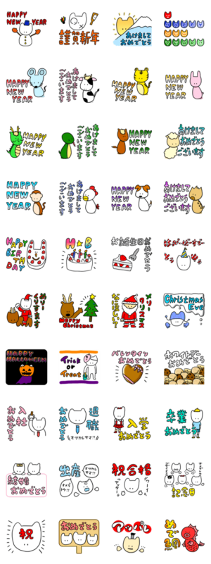 正月、誕生日、クリスマス、ハロウィン、バレンタイン、入学、卒業など祝い系スタンプ!中中 より発売