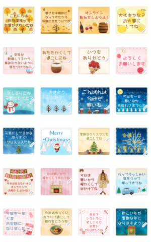 寒い冬に思いやりのある温かい言葉をかけられるスタンプです。素敵な年末年始を迎えたいですね。