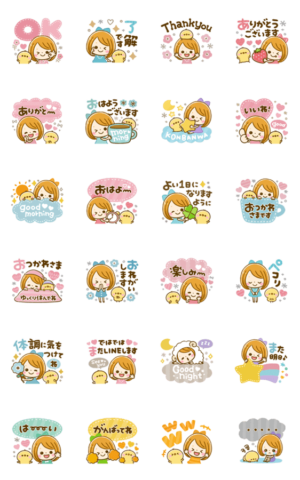 女の子が可愛く動く♡北欧風の毎日使えるスタンプです♪ぴよたぬき♡ より発売