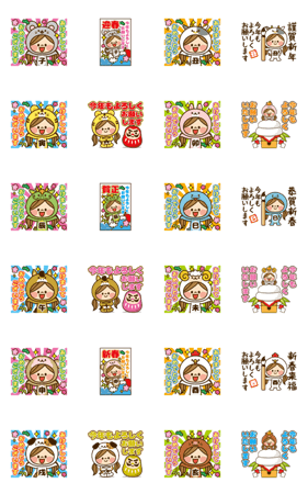 かわいい主婦の1日 動くスタンプ第4弾!はかわいい女の子が十二支に扮してお正月を盛り上げる干支スタンプです! 正月、年賀状など新年のあいさつに毎年使える永久保存版!