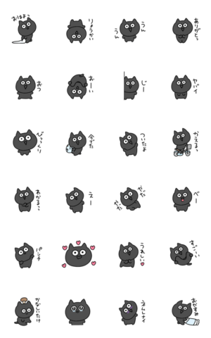 動く!シュールなミニ黒ねこのスタンプです。eribo より発売