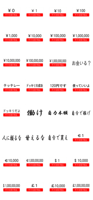 大金をあげるドッキリ、いたずらジョークスタンプです。おもしろい。