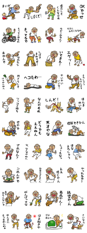 関西のおじいさんスタンプ第四弾です。関西に住んでいる元気で明るいおじいさんが、関西の言葉、関西弁を喋ります。Brody Machine より発売