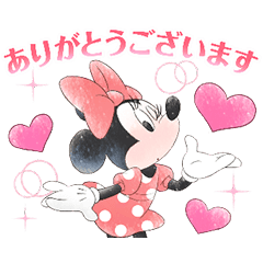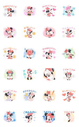 水彩画イラストのようなミニーマウスの敬語付きスタンプです。お友達はもちろん目上の方にも送りやすいスタンプとなっています。