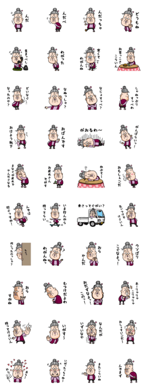 宮城県角田市出身のトメ子さん。名取〜仙台を渡り歩き、現在は大崎市在住。宮城弁を話す、お茶目なおばあちゃんのスタンプです。