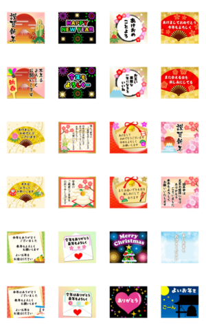 2019年末【年末年始キャンペーン】で販売したスタンプの修正版です。既に購入済の方はお気をつけ下さい。クリスマス・お正月・年末年始・年賀状にどうぞ♪NetworX より発売