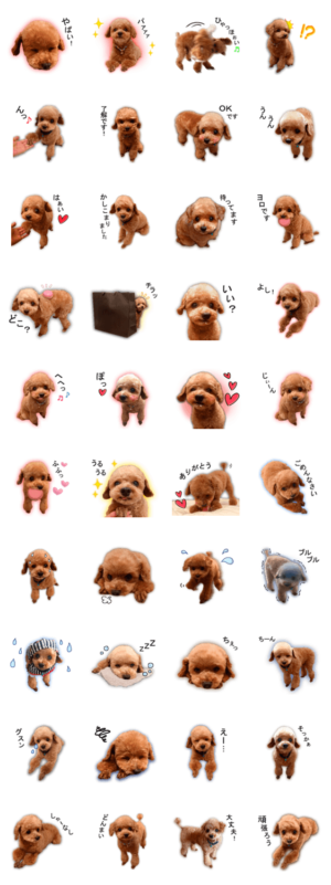 トイプーちゃんの表情豊かなおもしろ挨拶スタンプの実写バージョンです。チワワ、ミニチュアダックス、ポメラニアン、パピヨンなどすべての犬好き達へ。