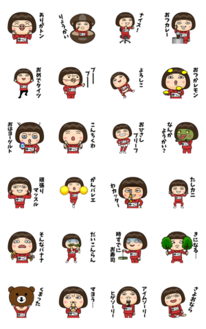 ゆっこ(ユッコ)が使う芋ジャージの名前スタンプ『ダジャレ編』。そんなバナナ、おはヨーグルト、おつカレー、おひさしブリーフ等、定番の駄洒落(だじゃれ)が満載♪