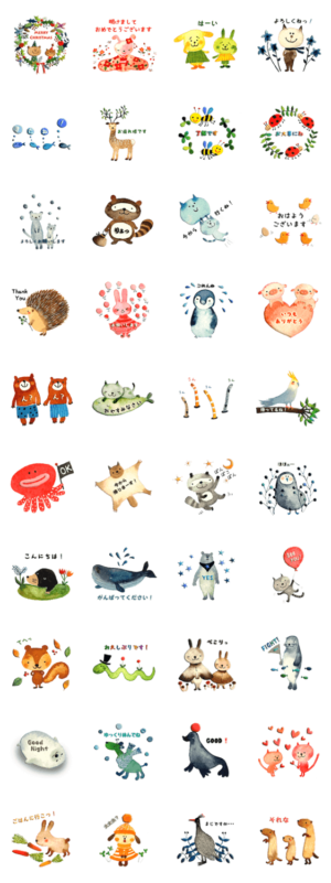 愉快でかわいい動物たちのスタンプです。あったかーい気持ちになれるように作ってみました。