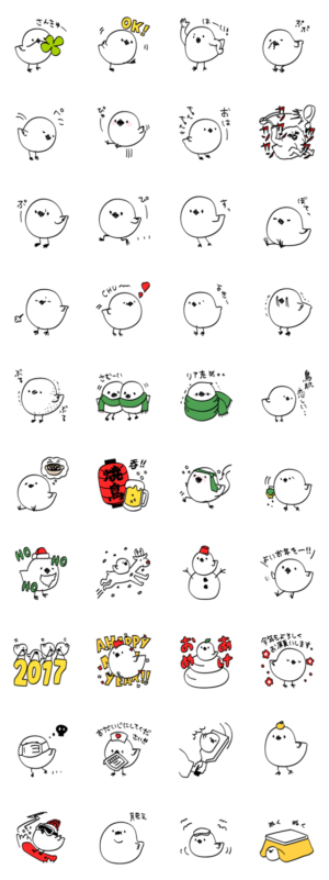 真っ白ふわふわな小鳥。雪の妖精シマエナガ。酉年の2017年、年末年始のごあいさつ、冬のイベントに便利なスタンプです。