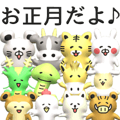 お正月の挨拶用スタンプです。十二支(子,丑,寅,卯,辰,巳,午,未,申,酉,戌,亥)全ていますので、毎年ずっと使えます。かわいい3Dのキャラ達と一緒に新年を迎えてください。ゼンチコ より発売