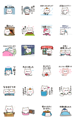 気遣いのできるねこの冬のアニメーションスタンプ第二弾!丁寧語・敬語で冬でも優しい心くばりメッセージが誰にでも簡単に送れます!DECOR より発売