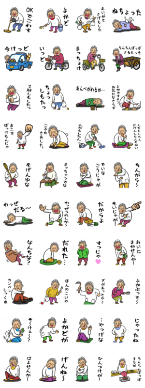 鹿児島弁おばあさんスタンプ第二弾です。鹿児島県に住んでいる元気で優しいおばあさんが、鹿児島県の方言、鹿児島弁を喋ります。Brody Machine より発売