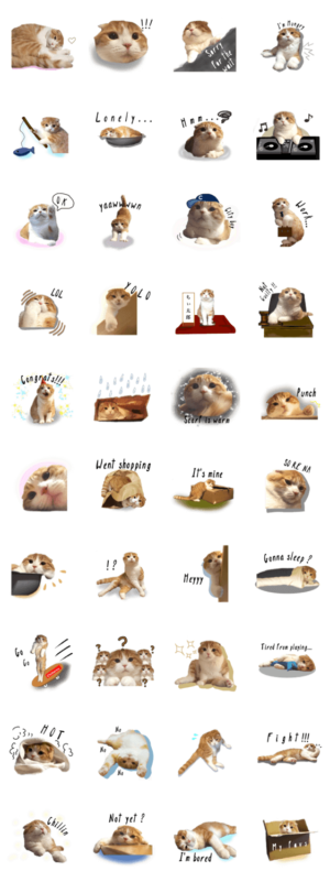 スコティッシュフォールドのねこ『ちぃ太郎』の日常をスタンプにしました。tomoopy より発売