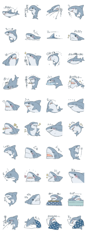 ふんわりとしたサメさんのスタンプ。日常使いにおすすめです!りくお より発売