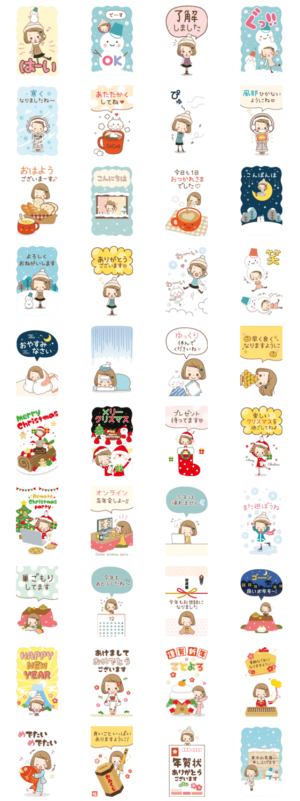 冬に使いやすい季節感たっぷりなスタンプです♪クリスマス・大晦日・お正月などの冬のイベントにも! ※このスタンプはトークルームで大きく表示されるBIGスタンプです。かりん より発売