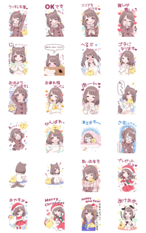 犬のように可愛く懐く女の子の冬スタンプです。 ※このスタンプはトークルームで大きく表示されるBIGスタンプです。h_hakusekirei より発売