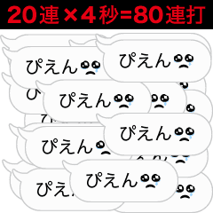 1秒間に20連打×4回転。4秒の間に合計80連打の吹き出しメッセージが放たれる。ブラフデザイン より発売