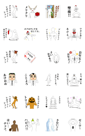 クリスマス、年末年始、お正月、ハロウィン、誕生日、バレンタインデー等で使える、冬特化型レボリューションスタンプ。