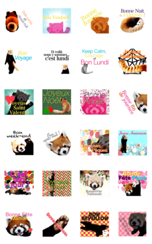 レッサーパンダがフランス語で季節の挨拶 スタンプ画像一覧